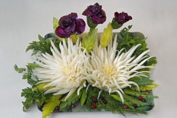 Hoa cúc đại đóa tỉa từ rau cải thảo trông rất ấn tượng với kích cỡ khá lớn so với hoa thật. Chỉ cần 1, 2 bông là đủ bày đĩa salad lớn thịt/cá phi-lê trong món lẩu của tiệc nhỏ gia đình. Ban đầu hoa chỉ được trưng bày, sau đó có thể dùng…